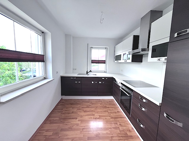 Helle Ausstattung; weiße Kunststofffenster; Laminatböden; großer Südbalkon; Kaminofenanschluss möglich; Einbauküche; Bad mit Waschbecken, WC, Badewanne und Dusche; Glasfaseranschluss